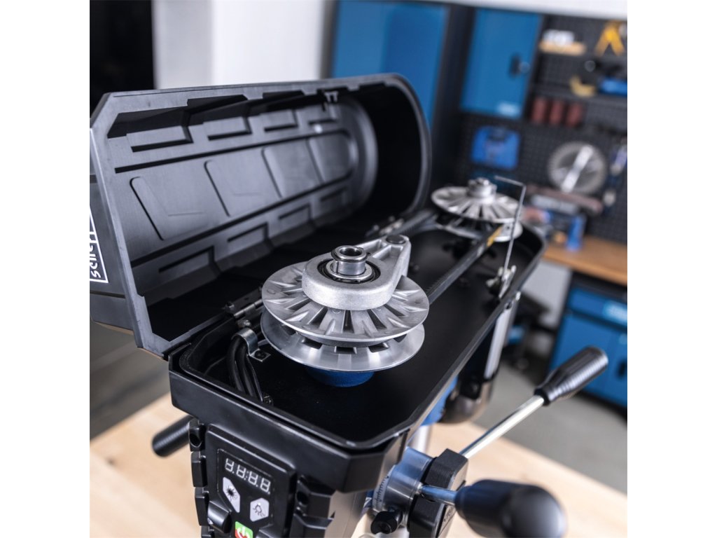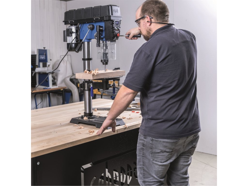 Stolní vrtačka Scheppach TBM 300 Vario je ideální volbou pro každého, kdo potřebuje přesné, stabilní a spolehlivé vrtání do různých materiálů – od dřeva přes hliník a plast až po kov.