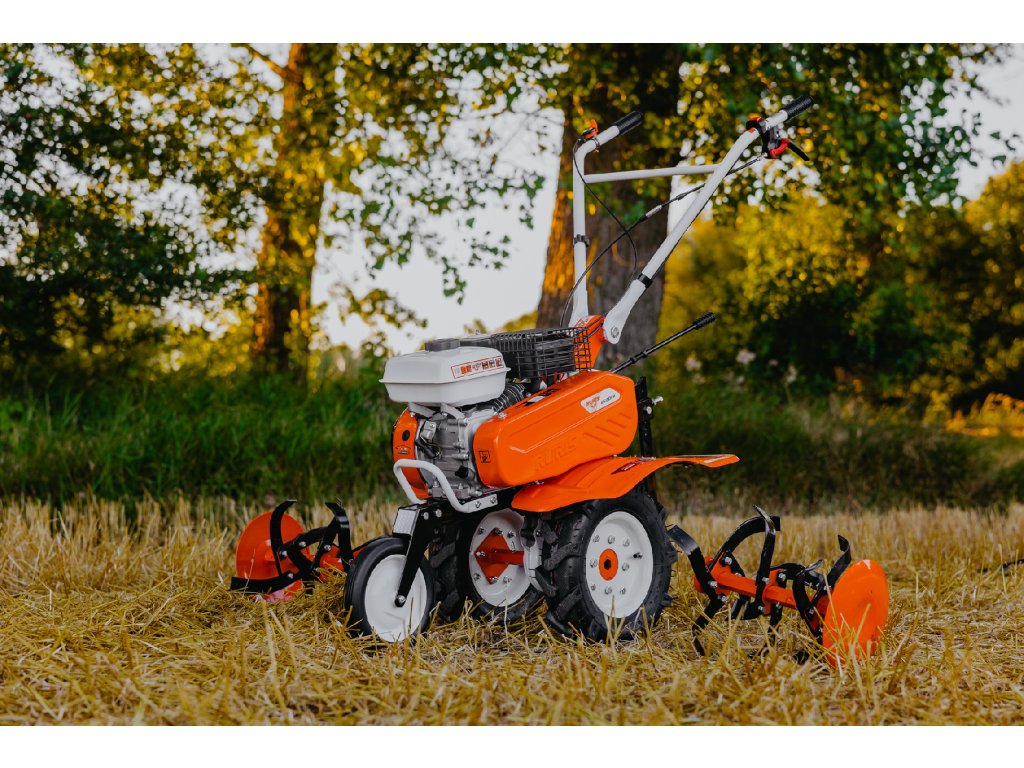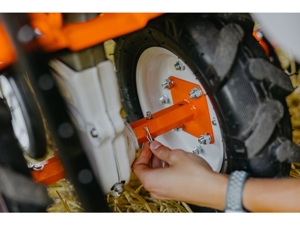 Jednoduchou přestavbou, kdy místo kultivačních nožů nasadíte kola můžete připojit vozík nebo bubnovou sekačku a získáváte dalšího užitečného pomocníka na Vaší zahradu. Libovolně lze k tomuto kultivátoru rovněž dokoupit příslušenství k obdělávání půdy.