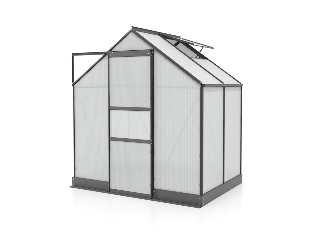 Obsahem balení jsou jednokřídlé posuvné dveře (š x v otvoru = 0,61 x 1,74 m), AL profily, prosklení, pozinkovaná ocelová základna, 1x střešní ventilační okénko s manuálním otevíráním, veškerý spojovací materiál. Ke skleníku je možné dokoupit řadu nadstandardního příslušenství - poličky, regály, další větrací střešní okno, automatický otvírač, okapové sady, teploměry, vlhkoměry, zavlažovací zařízení, elektrické odporové vytápění půdy.