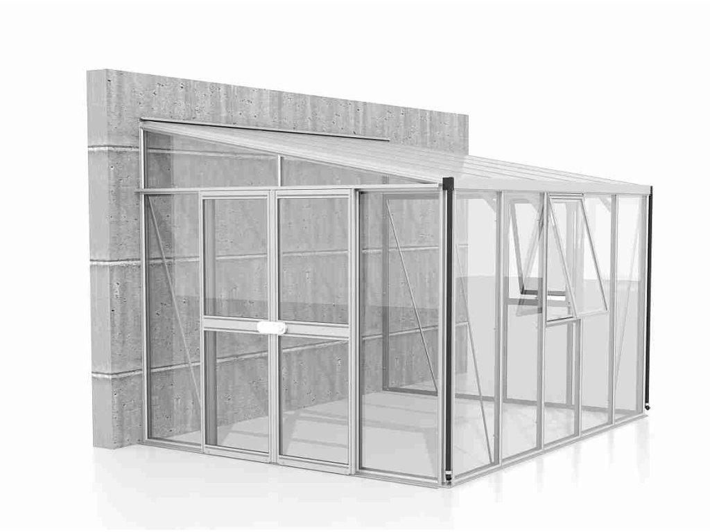 Skleníky ke stěně řady ATHENA jsou zařazeny do kategorie PREMIUM - skleník je vyrobený značkovým výrobcem z Velké Británie. Skleník je vyrobený z eloxovaných hliníkových profilů, prosklení je z kaleného skla síly 3 mm. Sklo výrazně snižuje přehřívání prostoru uvnitř během letních měsíců a současně zajišťuje dostatečnou světelnou propustnost. Kalená verze skla zajišťuje jeho naprostou bezpečnost - v případě rozbití se skleněná výplň roztříští na tisíce malých kousků, což zabrání případnému vážnému zranění. To je velmi důležitá vlastnost skleníku, kterou ocení především rodiče malých dětí pobíhajících po zahradě. Prosklení střechy je z tepelně-izolačních komůrkových polykarbonátových desek o síle 10 mm. Prosklení je zasunuto do hliníkových H-profilů.