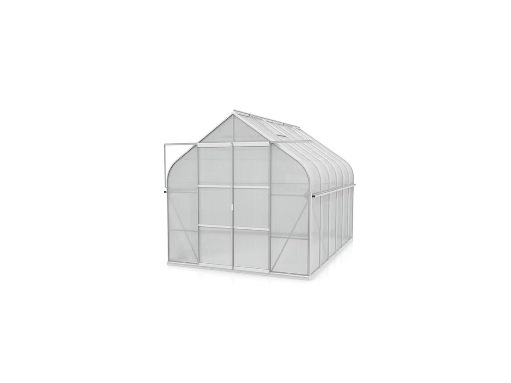 Obsahem balení jsou dvoukřídlé posuvné dveře (š x v otvoru = 1,22 x 2,00 m), AL profily, prosklení, pozinkovaná ocelová základna, 2x střešní ventilační okénko s manuálním otevíráním, veškerý spojovací materiál. Ke skleníku je možné dokoupit řadu nadstandardního příslušenství - poličky, regály, další větrací střešní i boční okénka, automatické otvírače k těmto okénkům, okapové sady, teploměry, vlhkoměry, zavlažovací zařízení, elektrické odporové vytápění půdy.