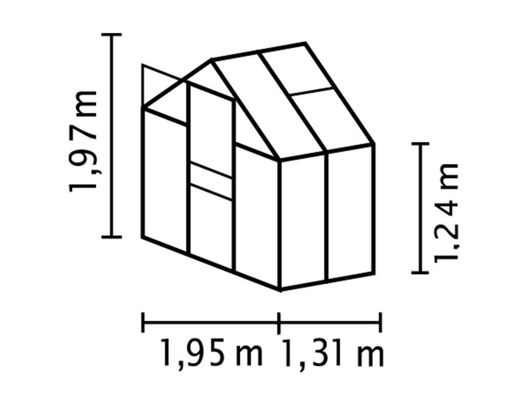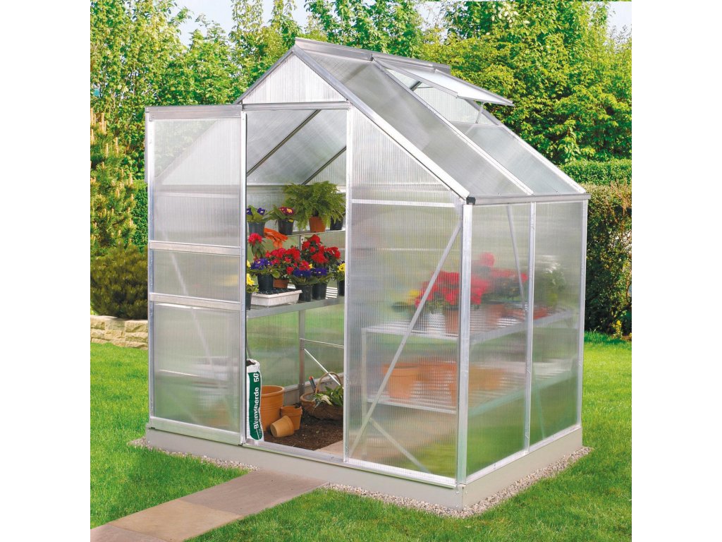 Obsahem balení jsou jednokřídlé posuvné dveře (š x v otvoru = 0,61 x 1,61 m), AL profily, prosklení, 1x střešní ventilační okénko s manuálním otevíráním, veškerý spojovací materiál. Skleník lze postavit např. na zděnou podezdívku nebo na základnu z pozinkovaného plechu. Při stavbě bez podezdívky dokoupení základny jednoznačně doporučujeme. Ke skleníku je možné dokoupit řadu nadstandardního příslušenství - poličky, regály, další větrací střešní i boční okénka, automatické otvírače k těmto okénkům, okapové sady, teploměry, vlhkoměry, zavlažovací zařízení, elektrické odporové vytápění půdy. Skleník dodáváme jako stavebnici s podrobným montážním návodem. Baleno v papírovém kartonu.