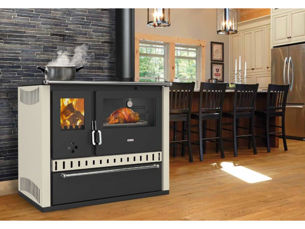 Sporák na tuhá paliva PRITY GT FI S DR, nerezová trouba, slonová kost