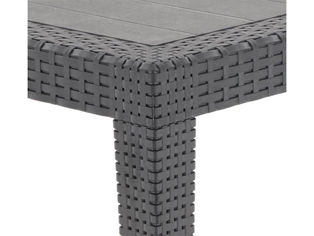Díky inovativnímu procesu vstřikování pomocí plynů se polypropylenové stoly stávají inteligentní alternativou k přirozenému pletenému materiálu z ratanu. Nábytek má originální povrchovou strukturu napodobující přírodní ratan. Ideální pro pohodlné venkovní posezení na vaší zahradě či terase. Vysoce odolné účinkům nepříznivých povětrnostních podmínek a UV záření.