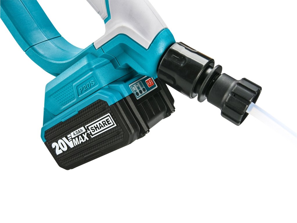 příslušenství: | 1ks baterie a 1ks nabíječky, multifunkční tryska, Hadice s filtračním košem a koncovkou pro připojení k pistoli, úložný vak, nádobka na čistící prostředek |