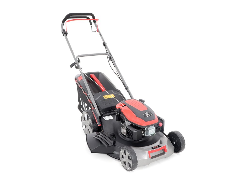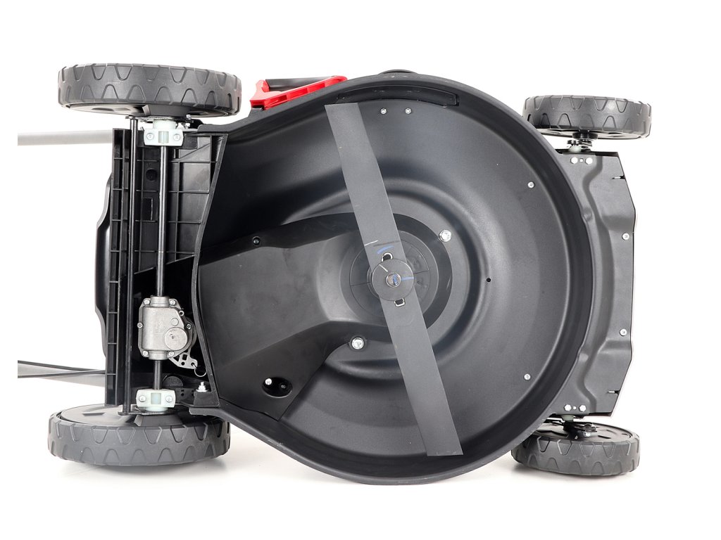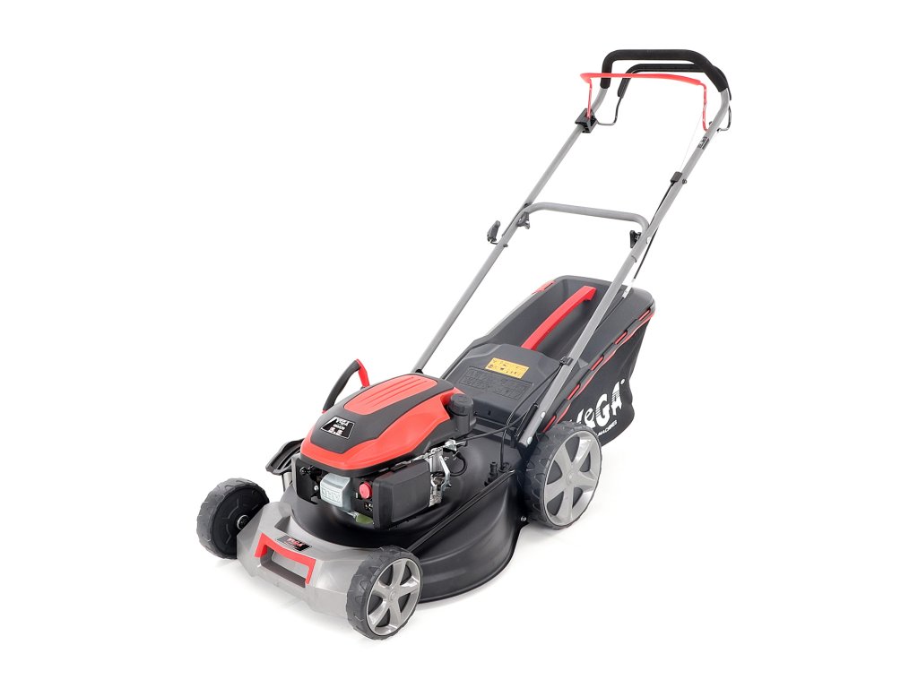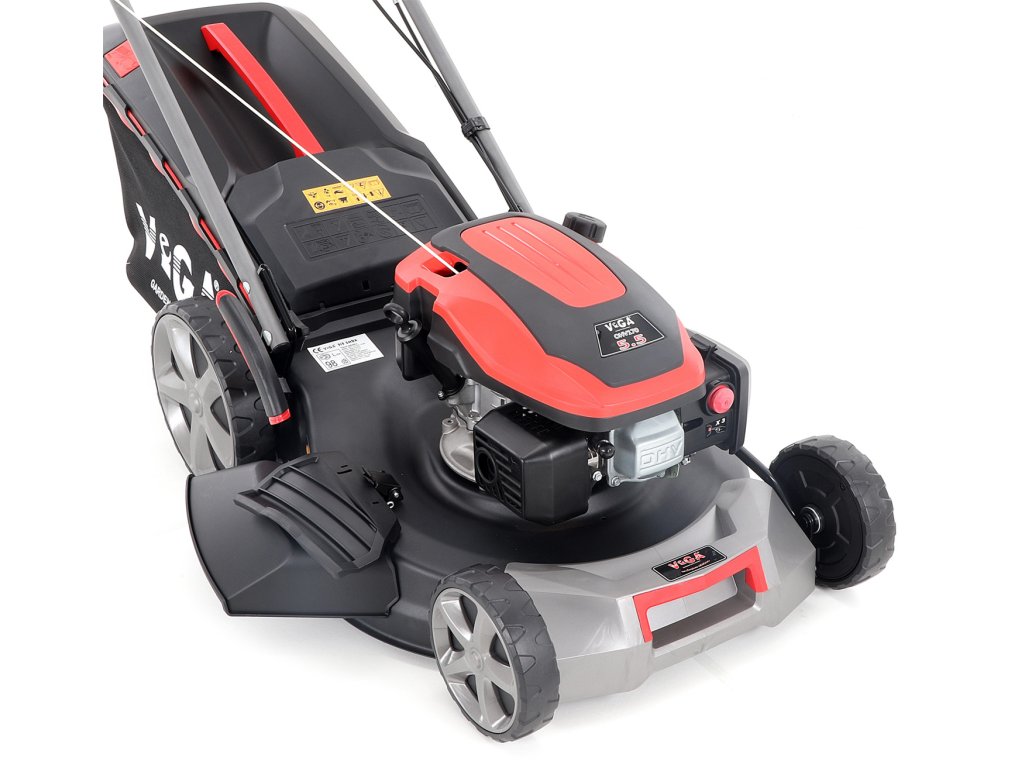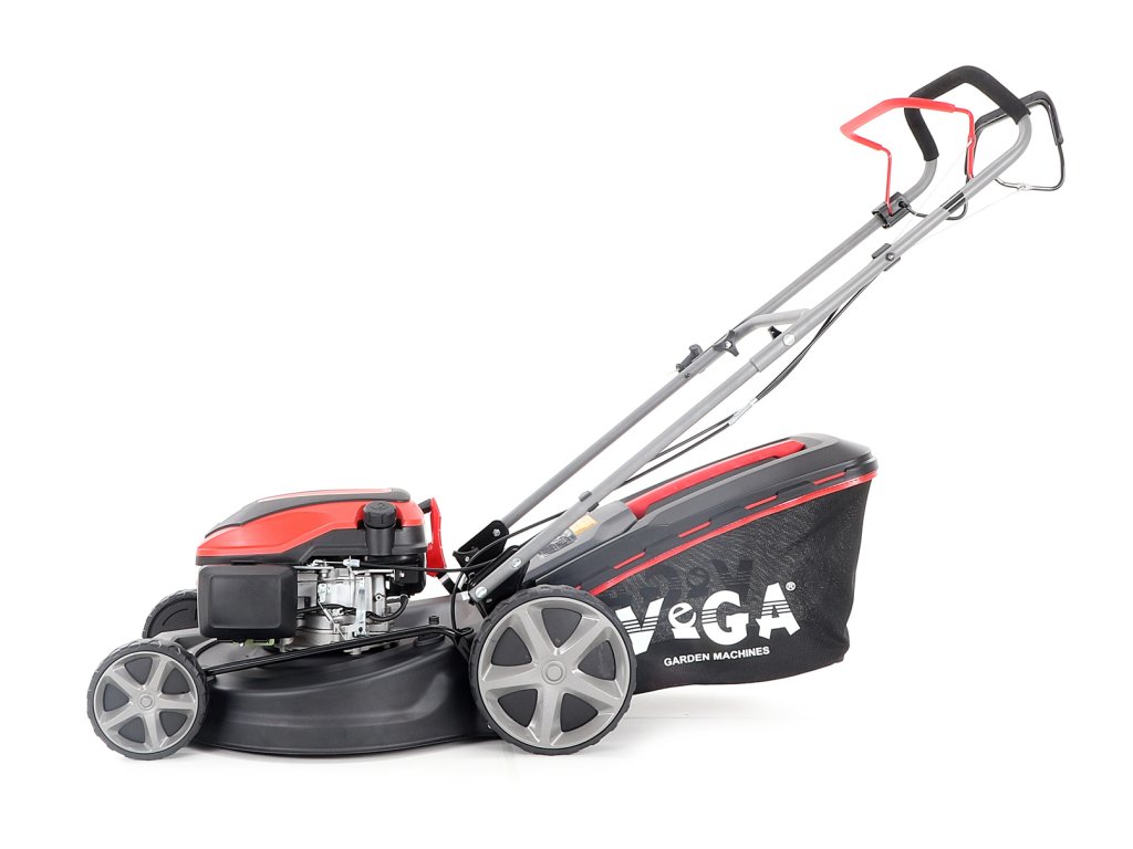 Velká zadní pojezdová kola i přední kola jsou uložena v oboustranných kuličkových ložiscích, centrální nastavení výšky sečení je u značky VeGA také samozřejmostí, jako ergonomické měkčené madlo.