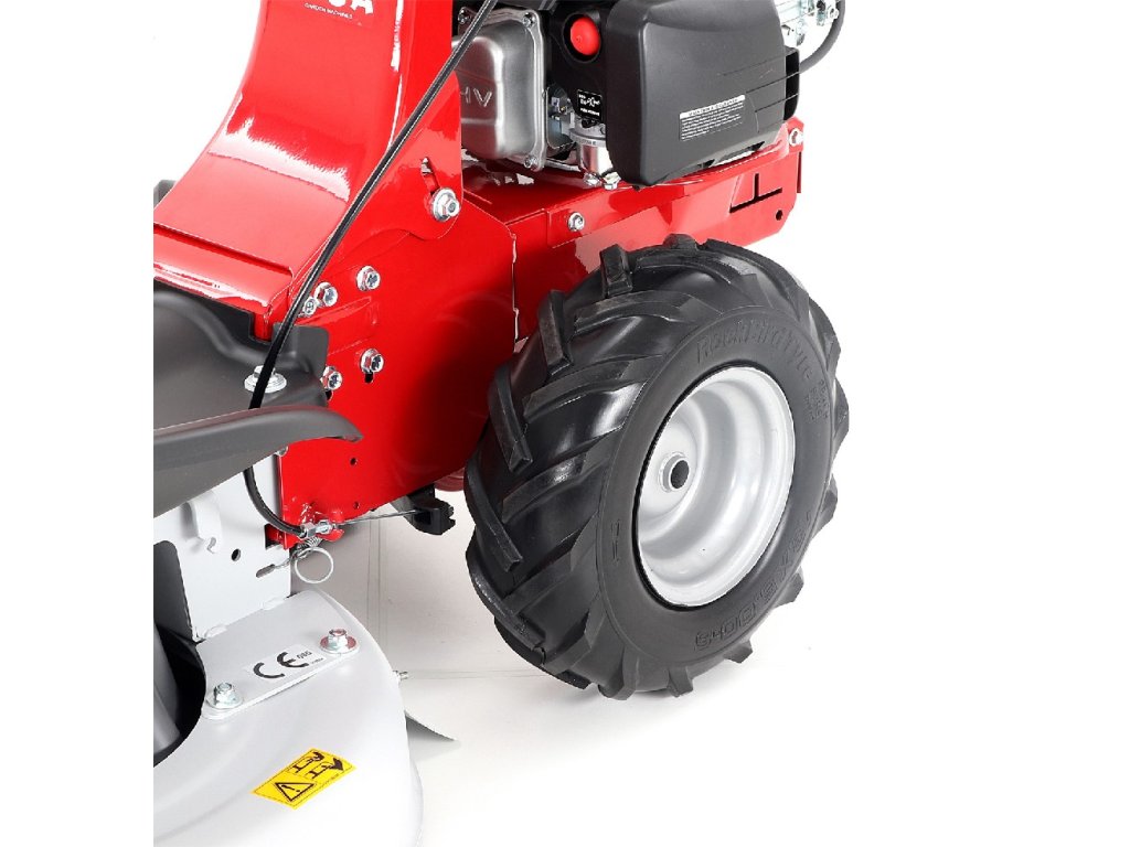 Velká šípová bezdefektová kola 13 × 5,00-6" zajišťují perfektní záběr a stabilitu i v méně udržovaném terénu.