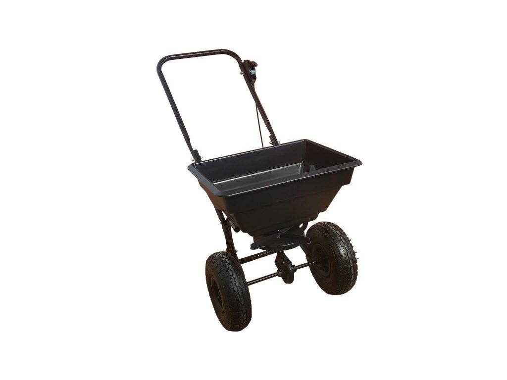 Vozík je vybaven prostornou násypkou o rozměrech 34 x 46 x 20 cm (šířka x výška x hloubka), která pojme až 15 l posypového materiálu. Násypka je vyrobena z PVC materiálu, který je odolný vůči vnějším vlivům a snadno se čistí. Díky maximální zátěži 25 kg je schopen rozprostřít velké množství posypového materiálu s minimální námahou. Ocelový rám zaručuje dlouhou životnost a odolnost vůči povětrnostním vlivům. S rozmetadlem se jednoduše manipuluje díky pneumatickým kolům o průměru 25,5 cm a šířce 8,8 cm. Vozík je tak nejen stabilní, ale lze s ním i dobře manévrovat. Jednoduché manipulaci napomáhá také ergonomický design stroje.