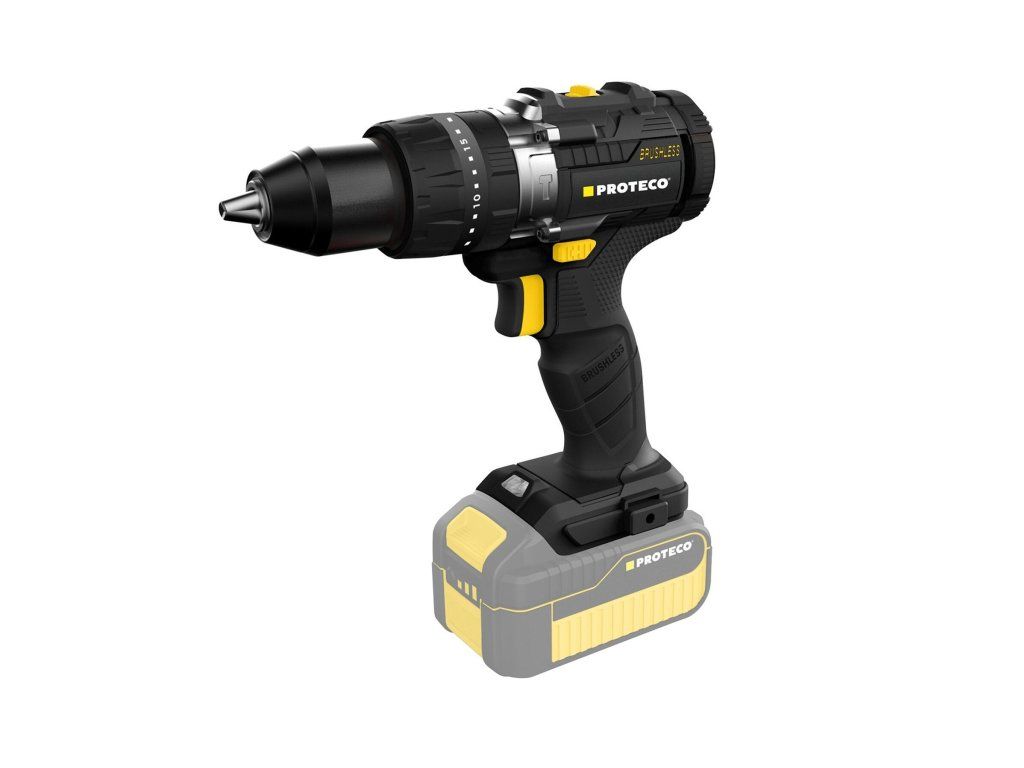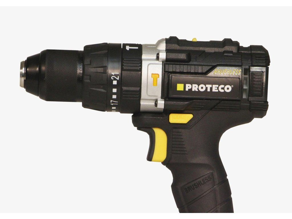 Vrtačka s příklepem akumulátorová Proteco je nepostradatelný všestranný pomocník, s nímž je hračkou jak vrtání, tak šroubování. Vrtačka je osazena brushless (bezuhlíkovým) motorem, který umožňuje dosáhnout vyššího výkonu, kroutícího momentu i jeho lepšímu průběhu. Kroutící moment příklepové vrtačky je 60 Nm, což jistě ocení každý kutil. Do sklíčidla můžete upnout vrtáky s průměrem max. 13 mm. Vrtačka je také vybavena LED světlem pro práci v hůře dostupných místech.