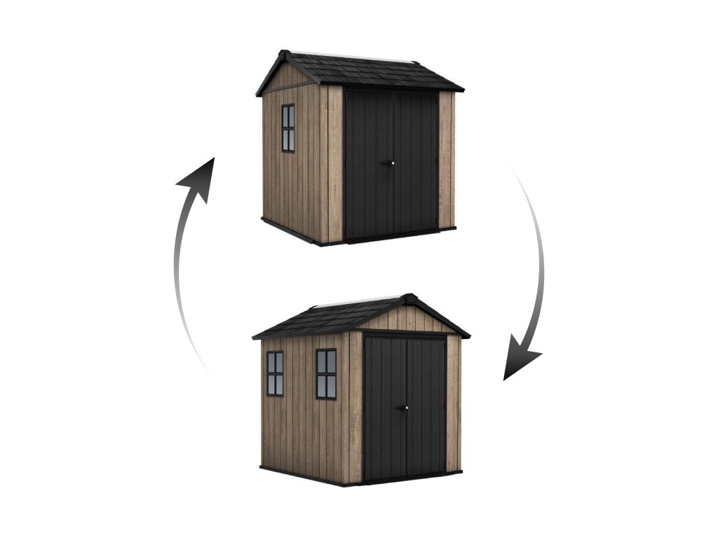 Jednou z největších výhod domku Apex je možnost oboustranného sestavení. Sami si zvolíte, kam umístit okno a dveře, aby se co nejlépe přizpůsobily uspořádání vaší zahrady. Dvojité stěny navíc zajišťují vysokou stabilitu a odolnost konstrukce.