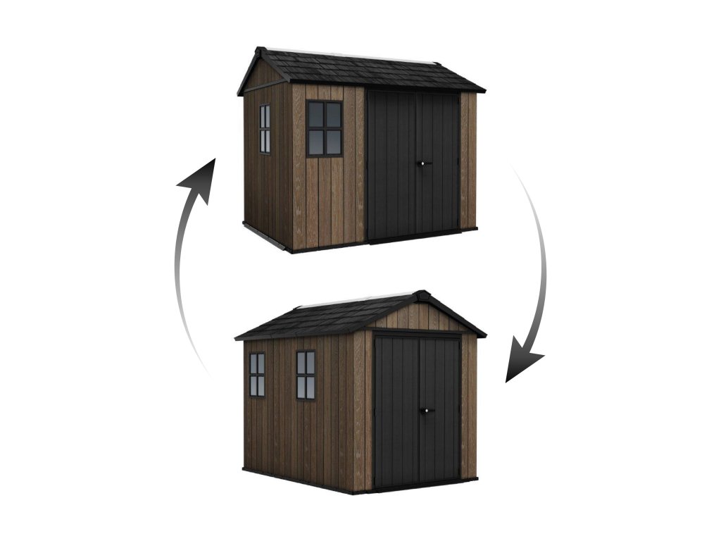 Jednou z největších výhod domku Apex je možnost oboustranného sestavení. Sami si zvolíte, kam umístit okno a dveře, aby se co nejlépe přizpůsobily uspořádání vaší zahrady. Dvojité stěny navíc zajišťují vysokou stabilitu a odolnost konstrukce.