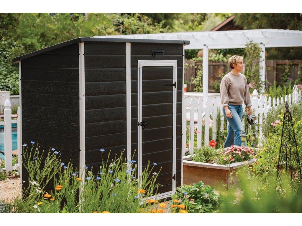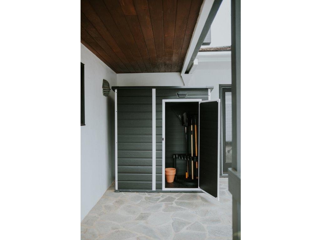 Zahradní domek Keter Essential 6 x 4 tmavě šedý / bílý, s podlahou