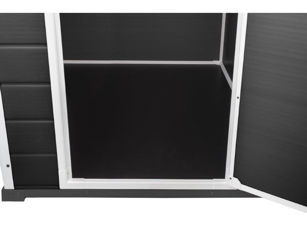 Součástí domku je vlastní podlahový panel, který chrání uložené předměty před vlhkem a nečistotami. Díky vestavěnému ventilačnímu systému je uvnitř zajištěno dostatečné proudění vzduchu, což zabraňuje vzniku plísní nebo kondenzaci vlhkosti. Uzamykatelné dveře pak chrání vše uvnitř před nepovolanými osobami.