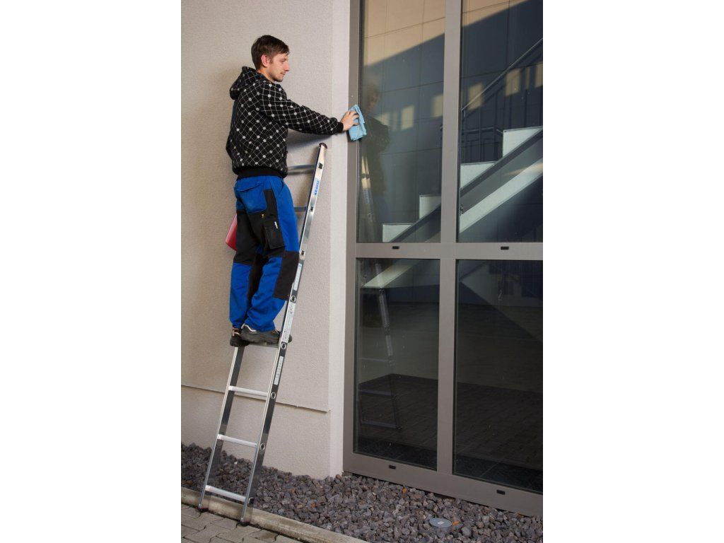 Lehký a účelný hliníkový opěrný žebřík pro běžné činnosti.