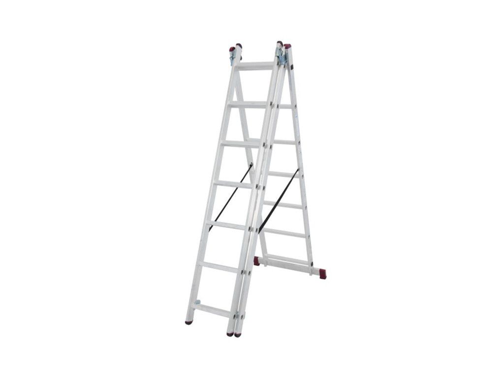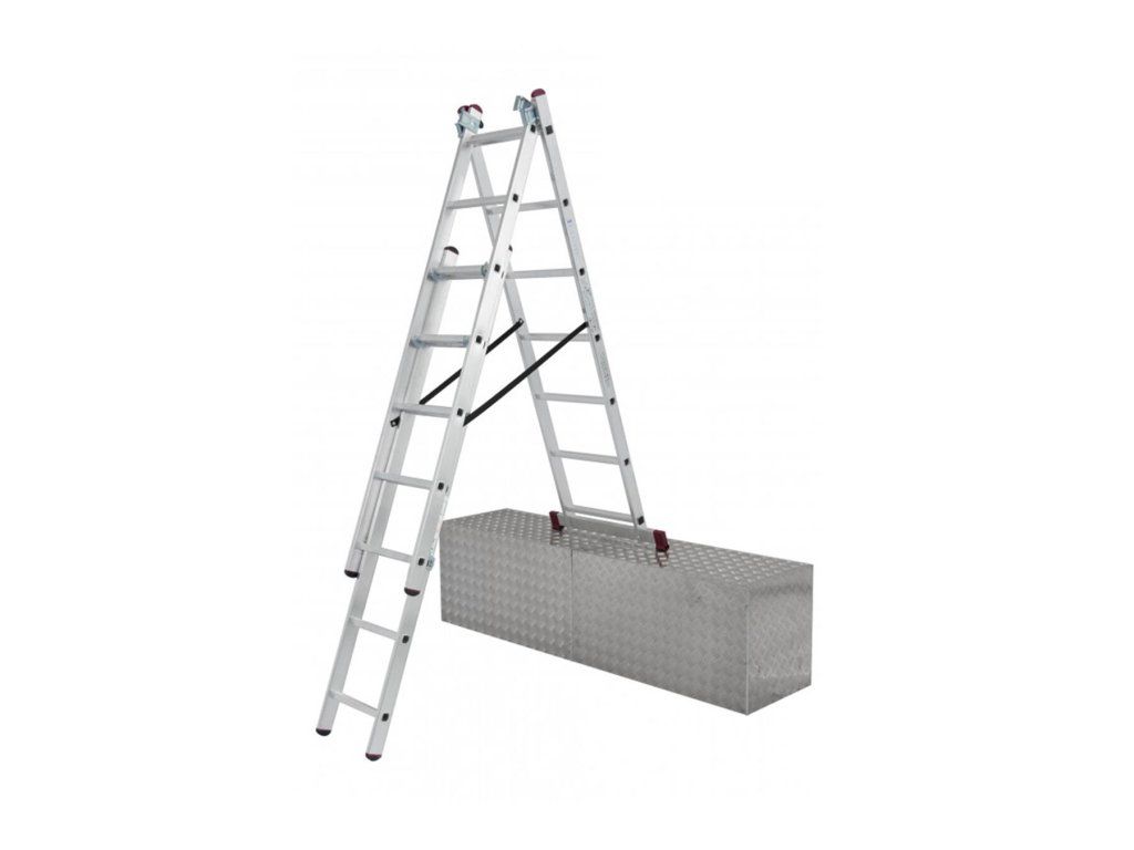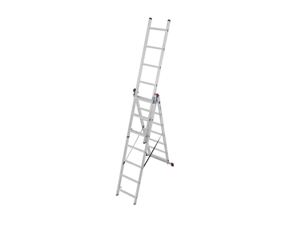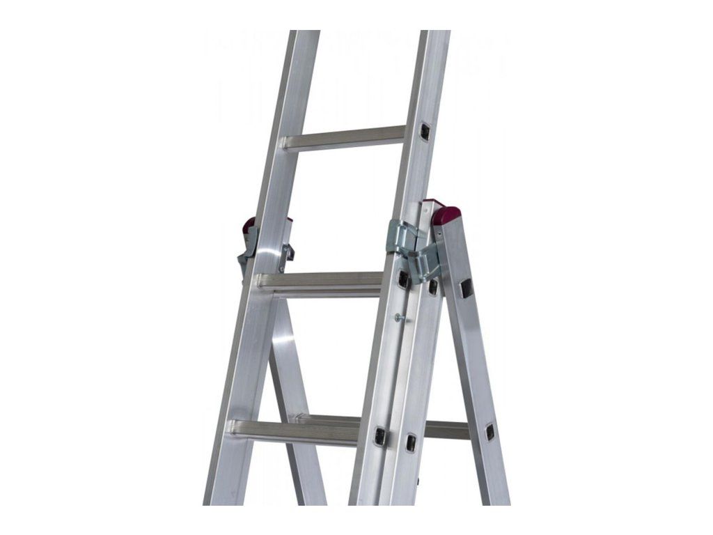 Trojdílný mnohoúčelový hliníkový žebřík je možné použití jako opěrný žebřík, štafle nebo výsuvný žebřík