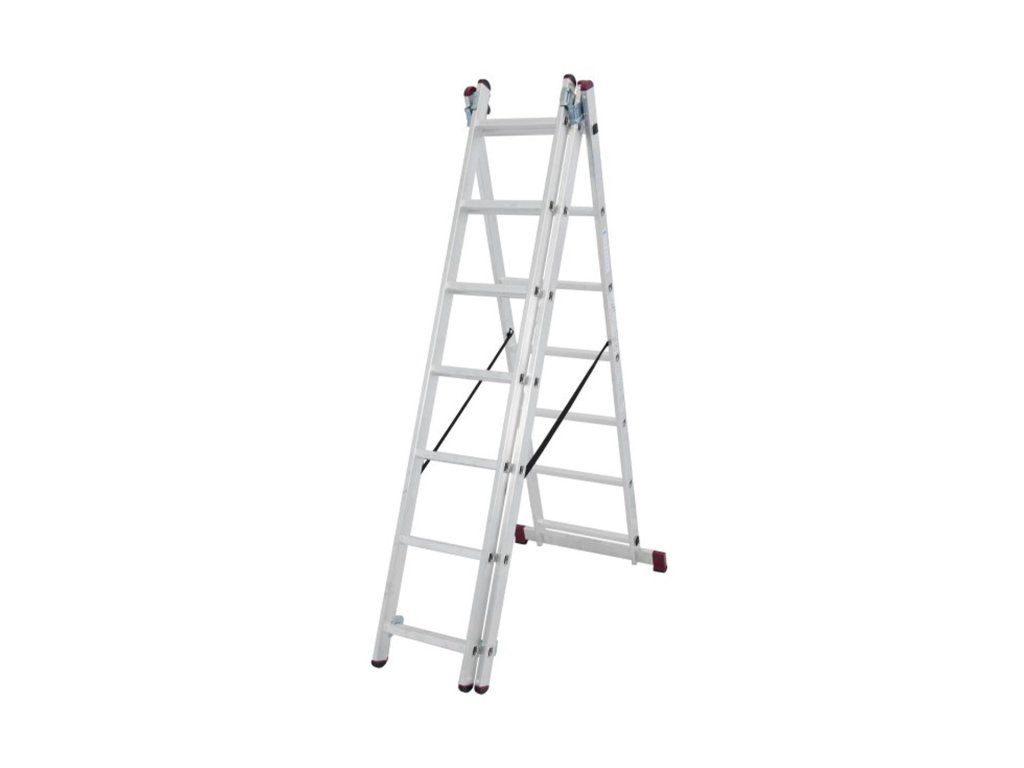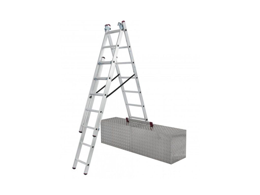 Trojdílný mnohoúčelový hliníkový žebřík je možné použití jako opěrný žebřík, štafle nebo výsuvný žebřík